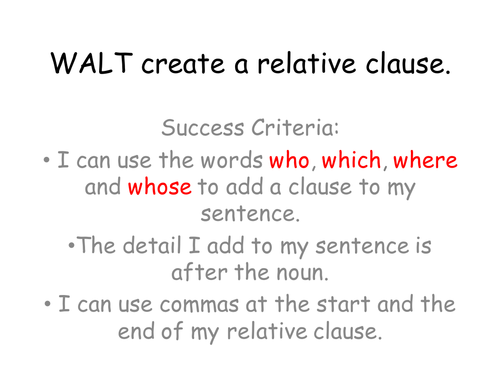 The woman who is with the red dress asking me the address was very beautiful. We use relative clauses to make clear which person or thing we. Relative clauses are clauses starting with the relative pronouns who*, that, which, whose, where, when. There are two kinds of relative clauses. A relative pronoun is a word like that or which or who, so a relative clause is a clause that begins with a relative pronoun. The verb in the relative clause must also. The bedroom, that is upstairs, needs to be redecorated. By combining sentences with a relative clause, your text becomes more fluent and you can avoid repeating certain words. A relative clause is one kind of dependent clause. It is sometimes called an adjective clause because it functions like an adjective—it gives. Who also has the derived forms whom and whose. Relative clauses allow us to provide additional information without having to start a new sentence. They are most often used to define or identify the noun that precedes them.